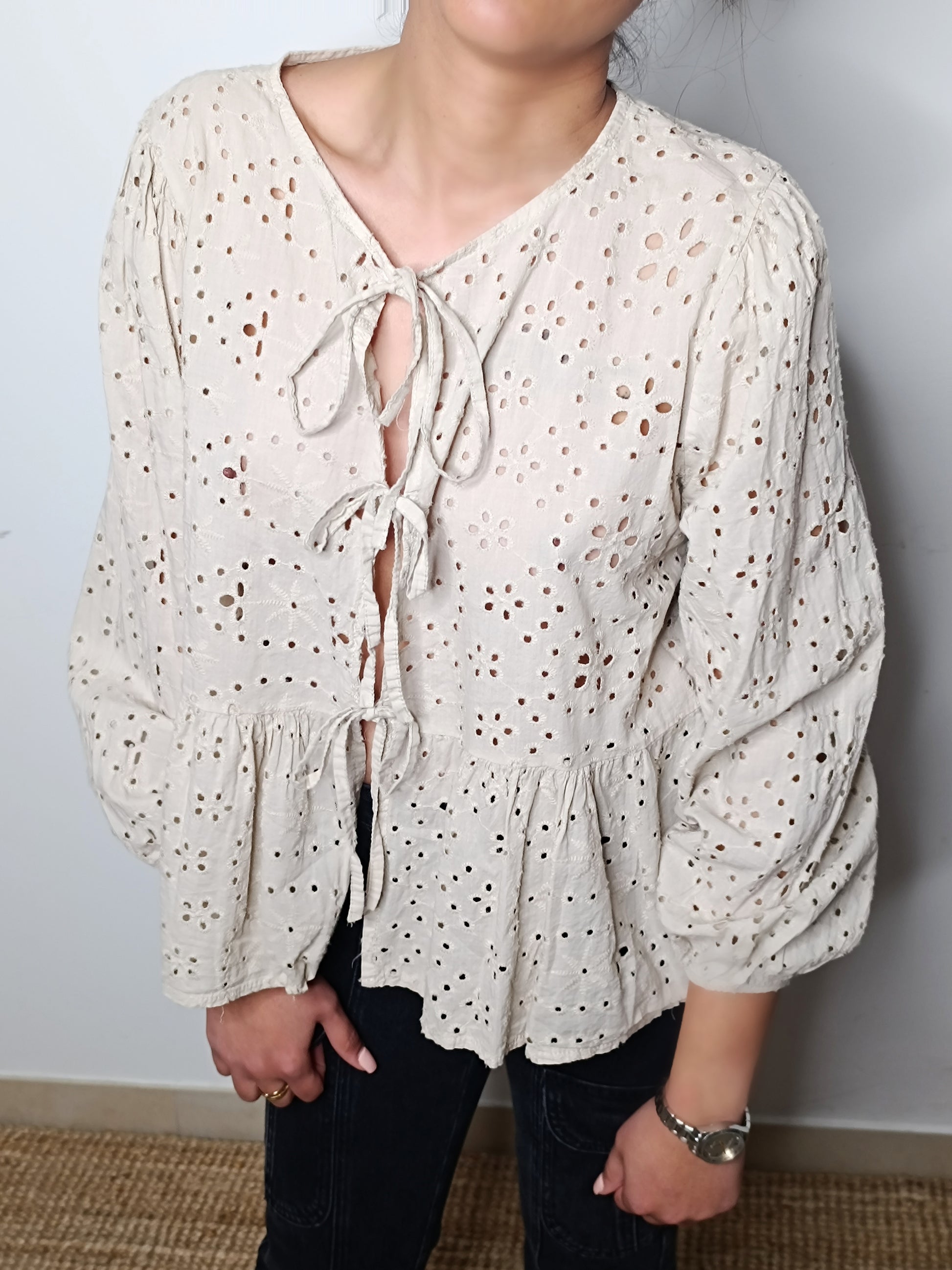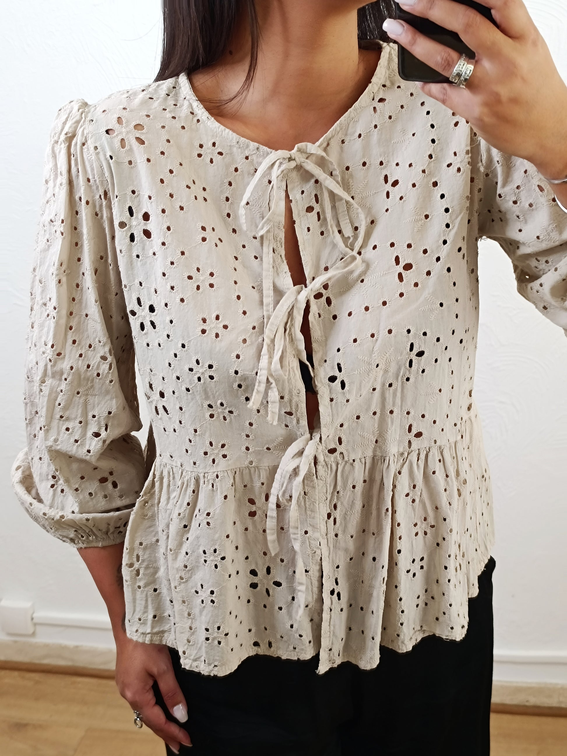 - On aime beaucoup la broderie anglaise ajourée sur l’intégralité de la chemise