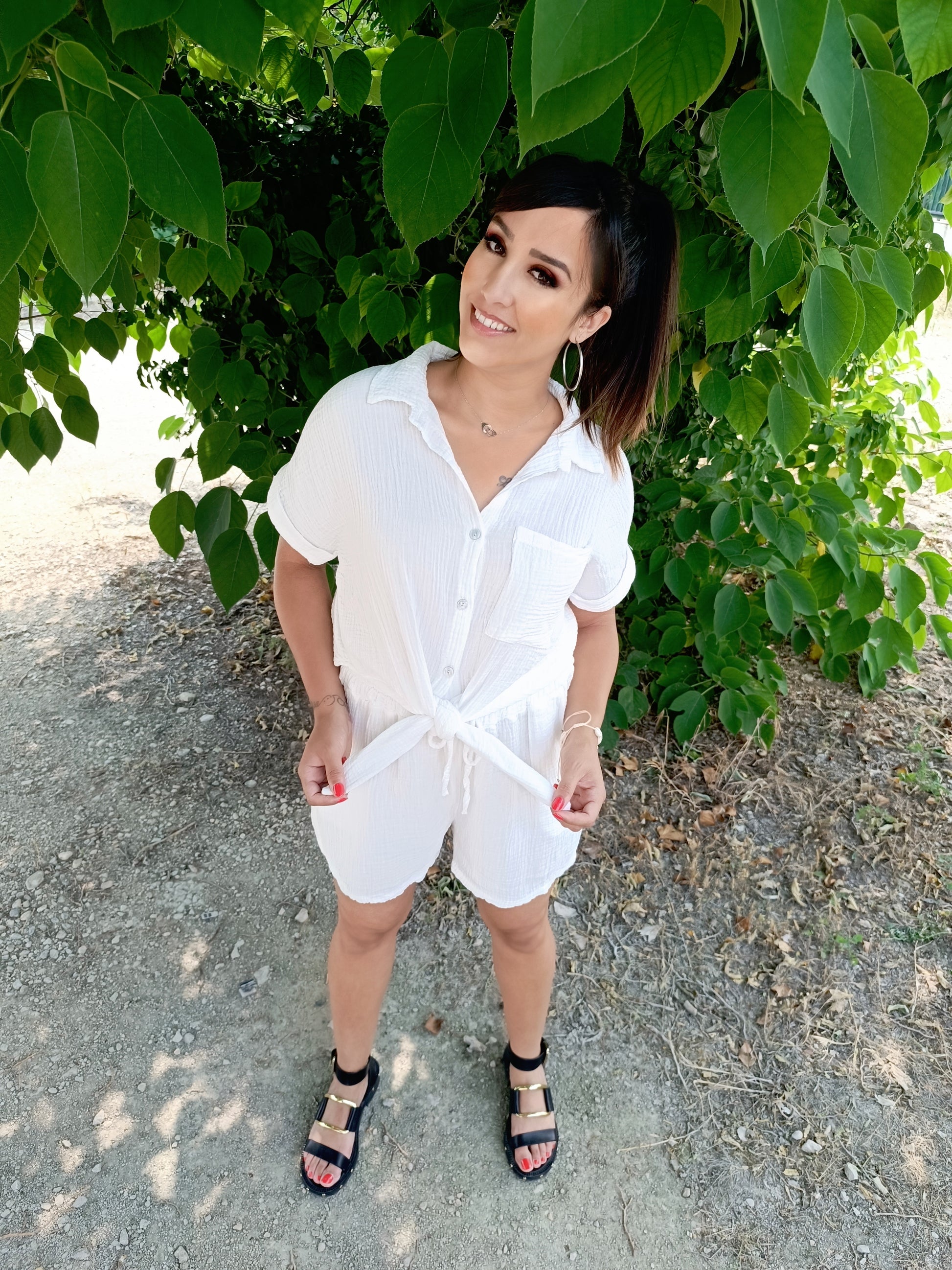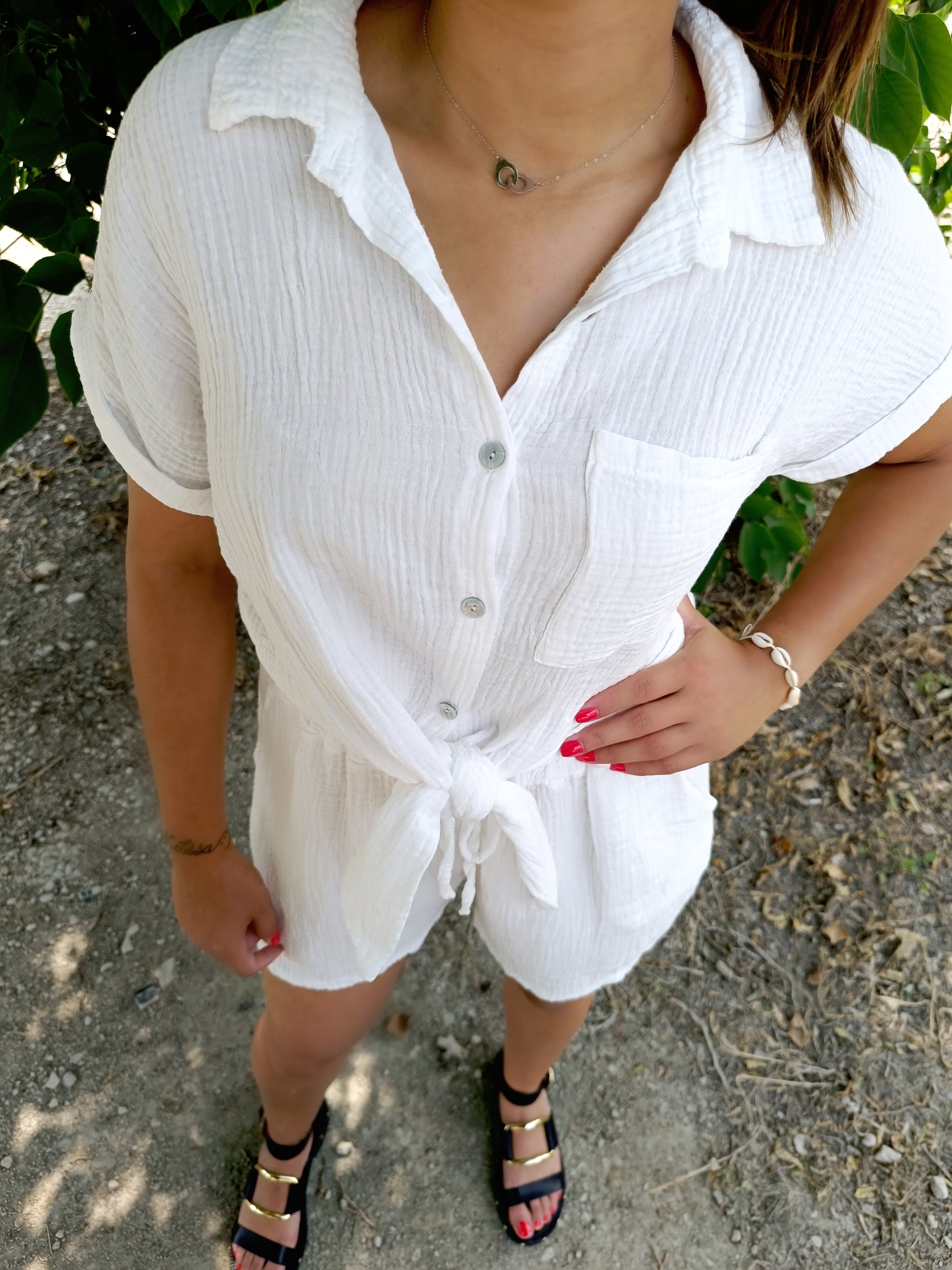 - Short et chemise à nouer au niveau du ventre