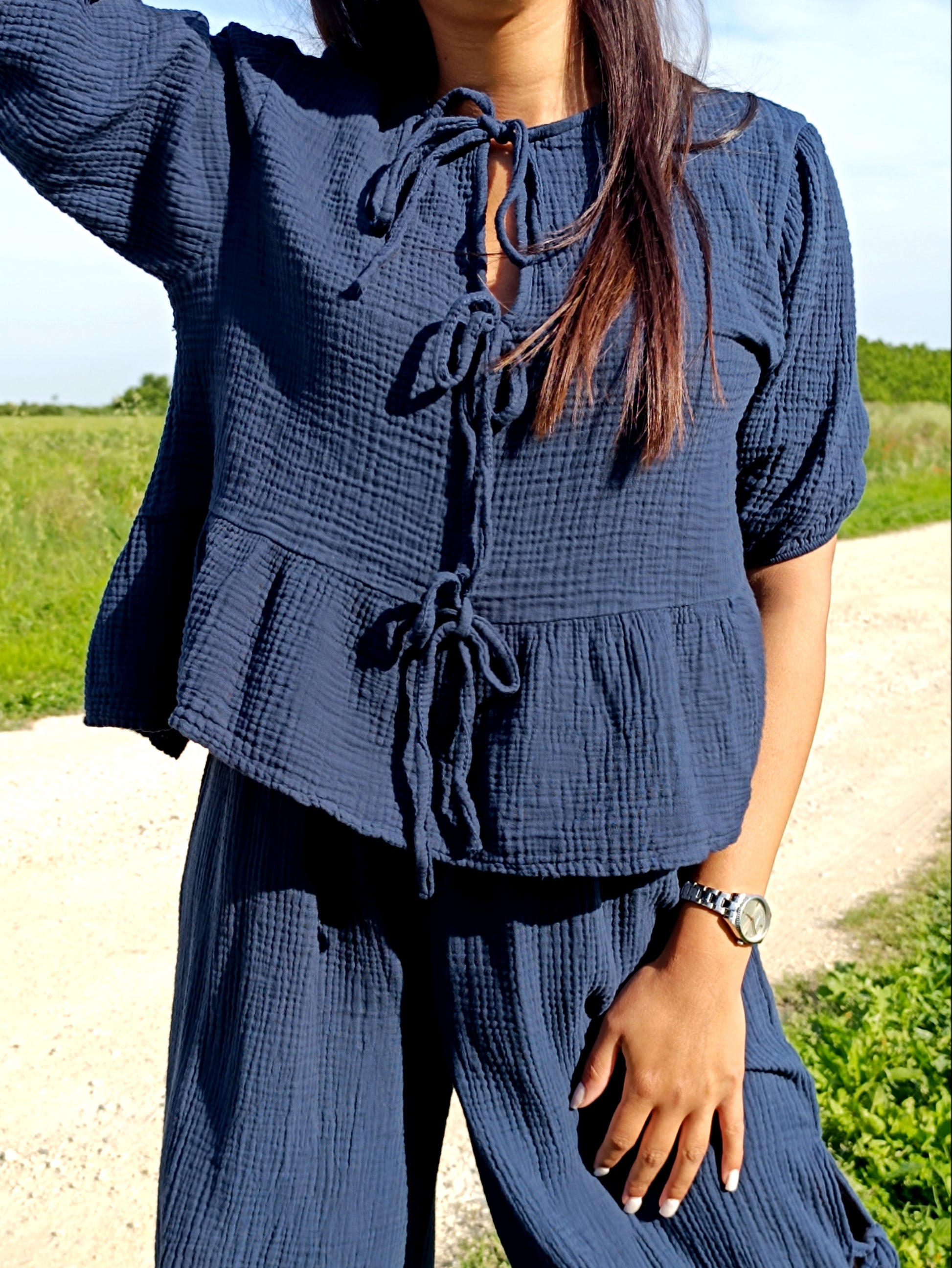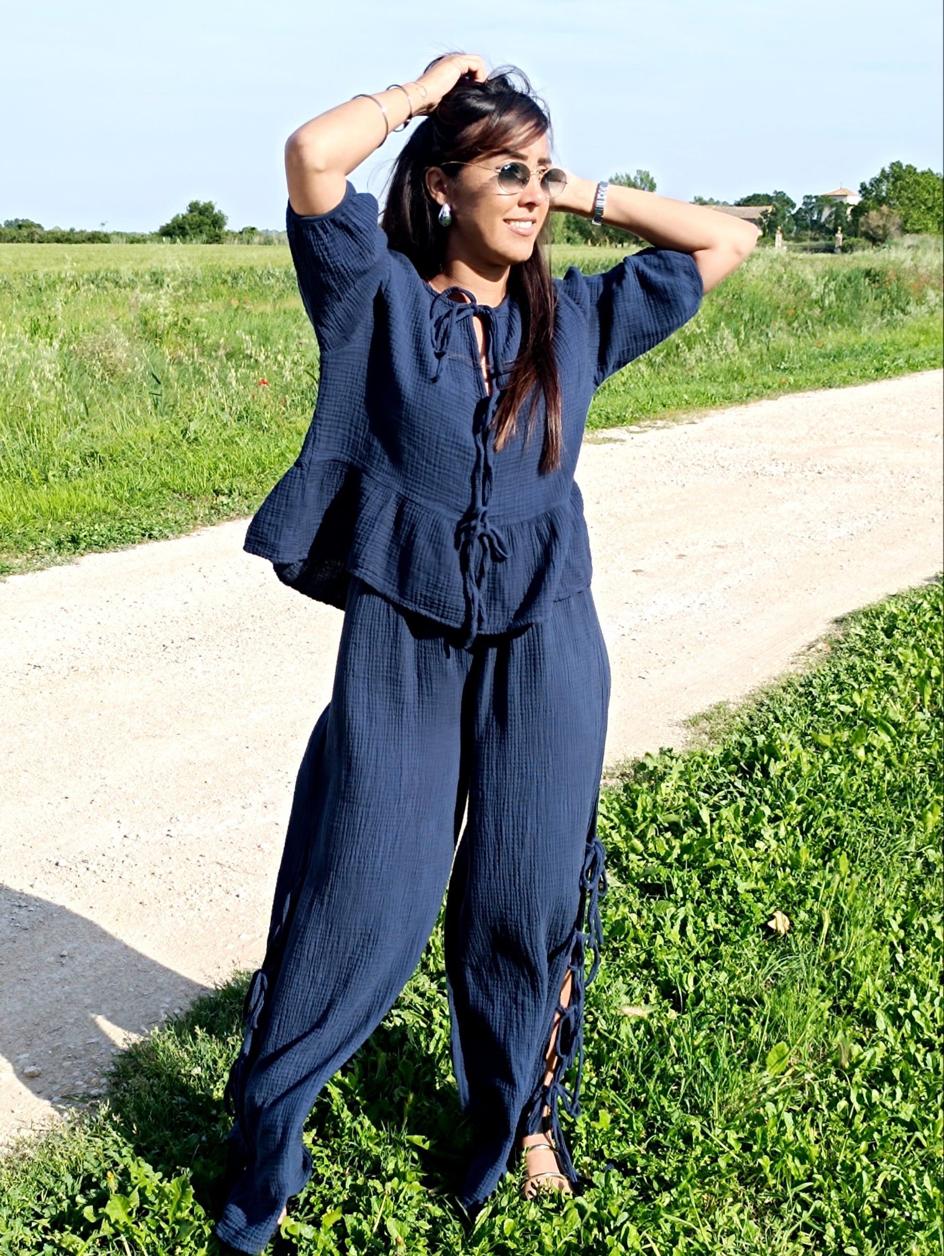- Crush pour cet ensemble en gaze de coton bleu marine 💙