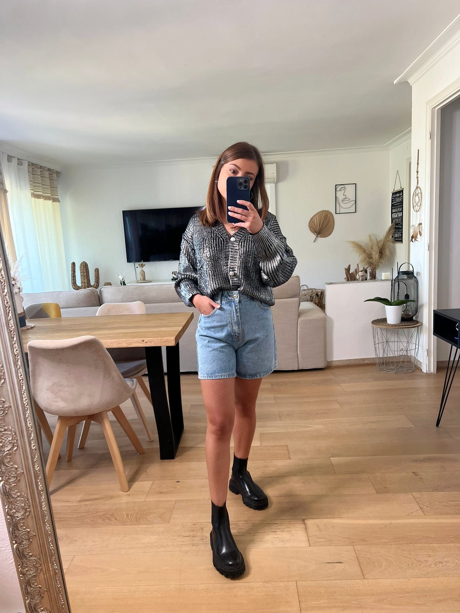 - Marine le porte avec le short strassé