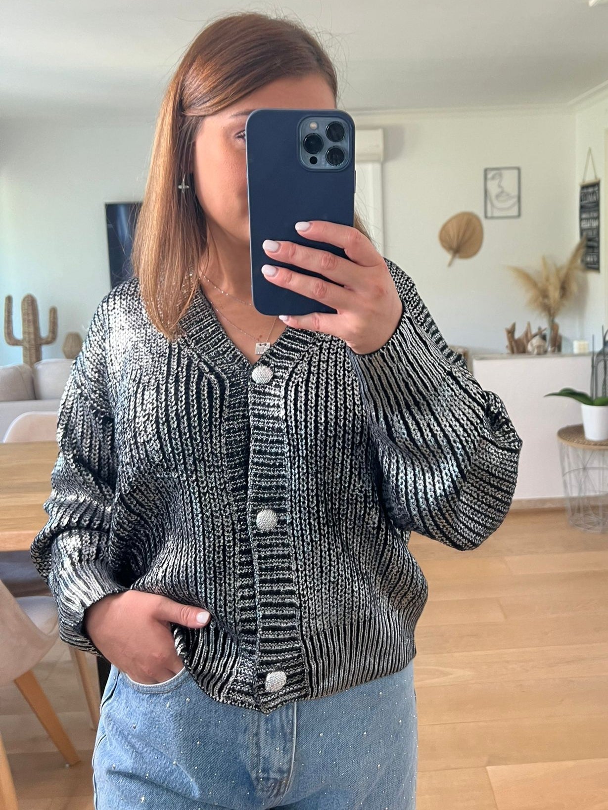 - Gilet argenté et noir effet métallisé