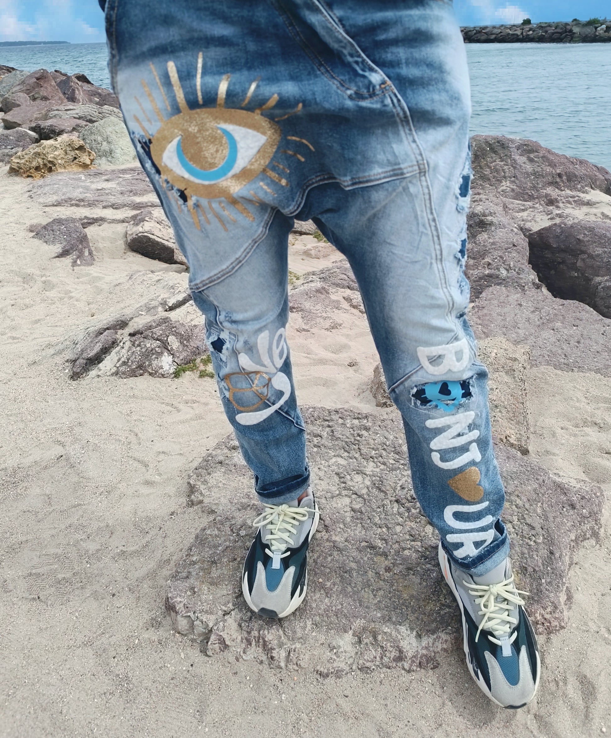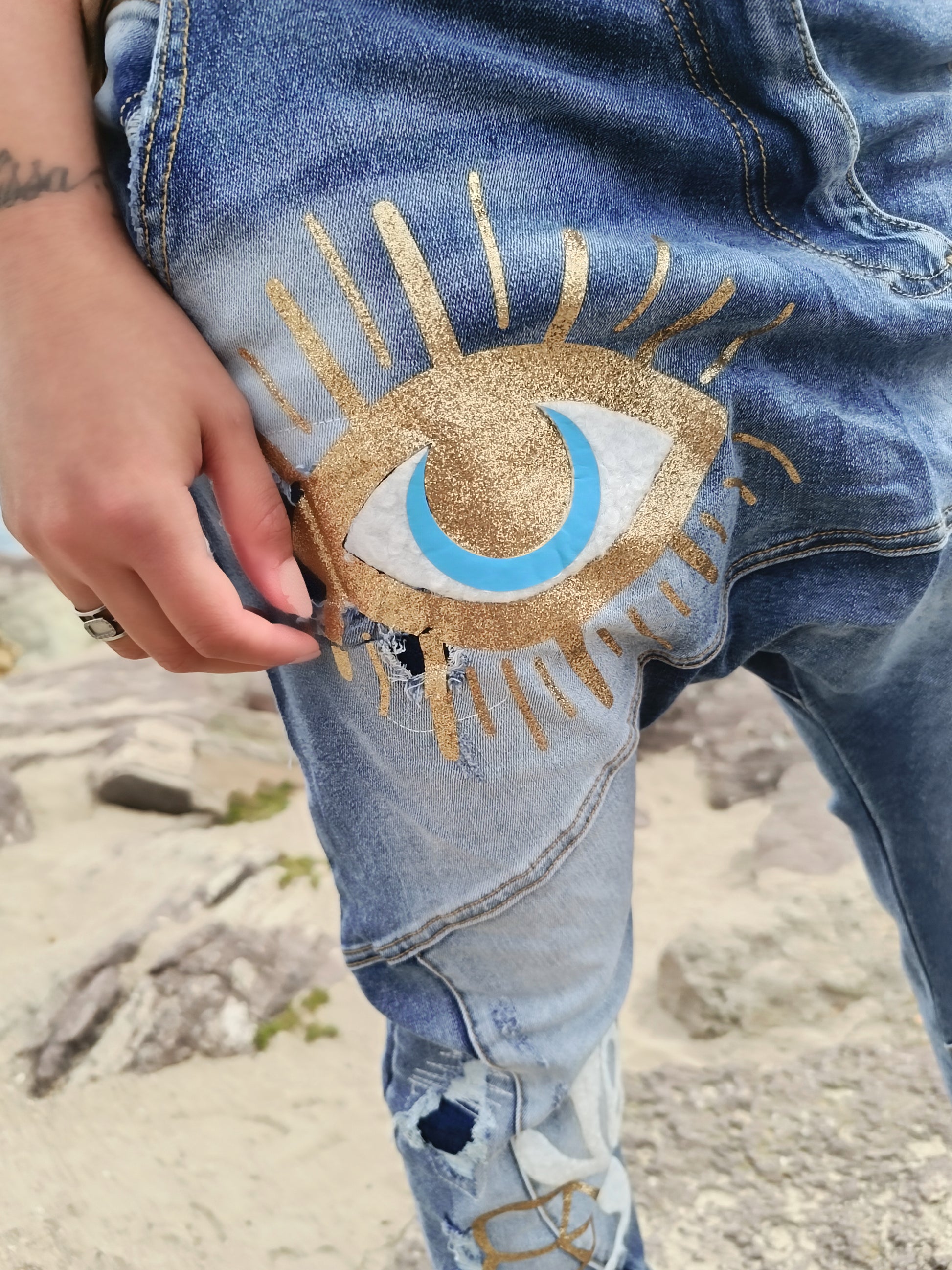 - Logo "oeil" et coeur "peace and love" doré pailleté et écriture