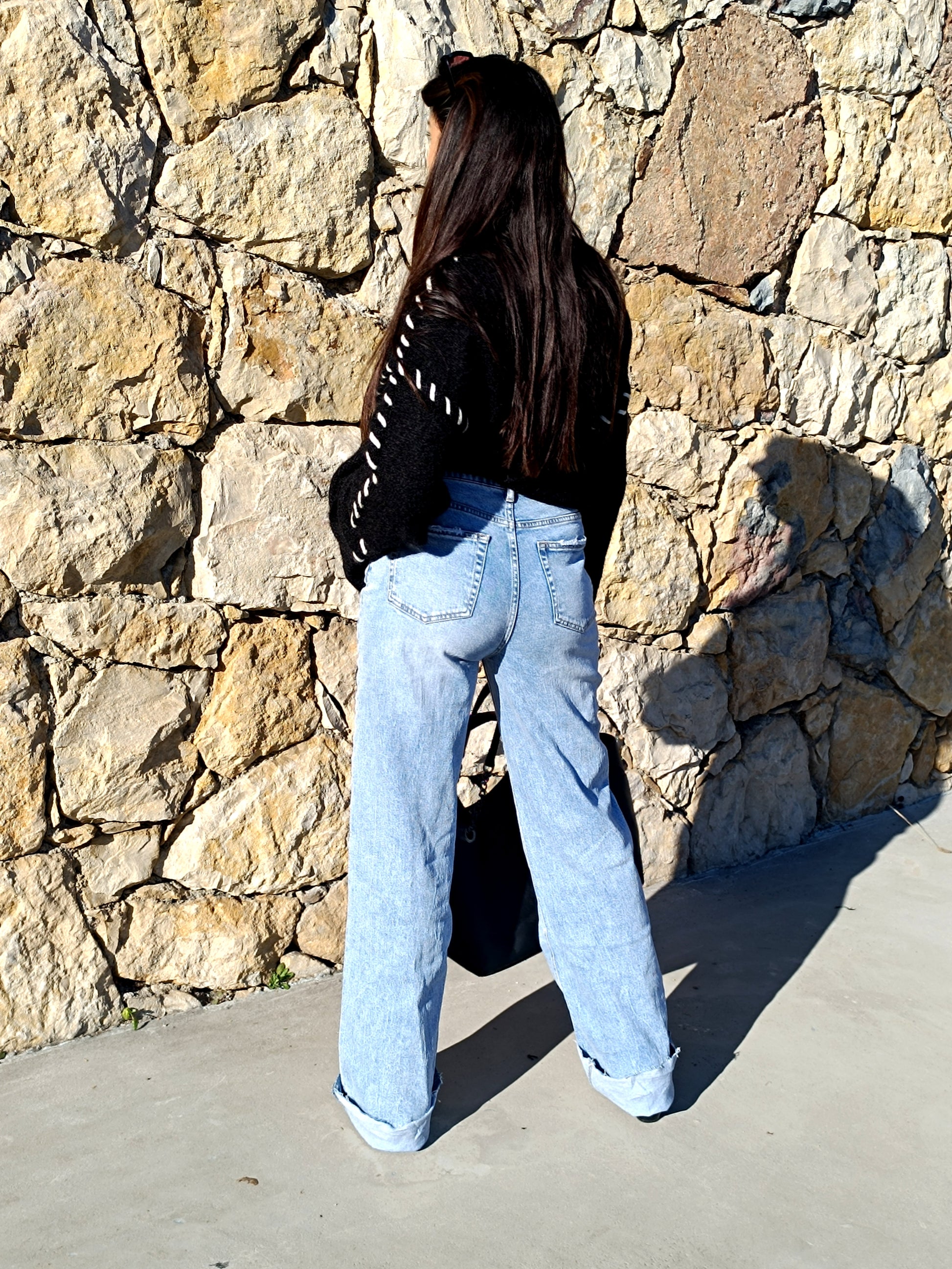 - Ce jean wide leg bleu offre une silhouette allongée et élégante tout en restant décontracté et confortable. Sa taille haute ajoute une touche moderne et féminine à cette coupe ample. Parfait pour un look casual chic, il se porte facilement avec des baskets ou des talons pour une allure plus sophistiquée.