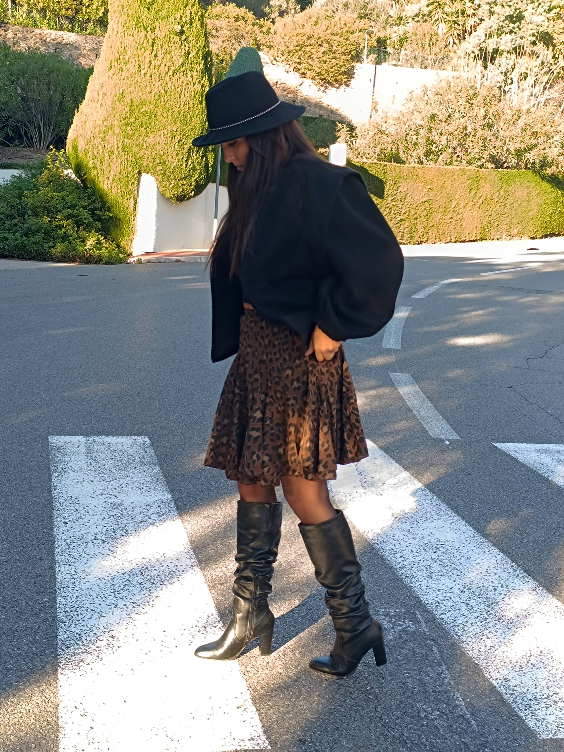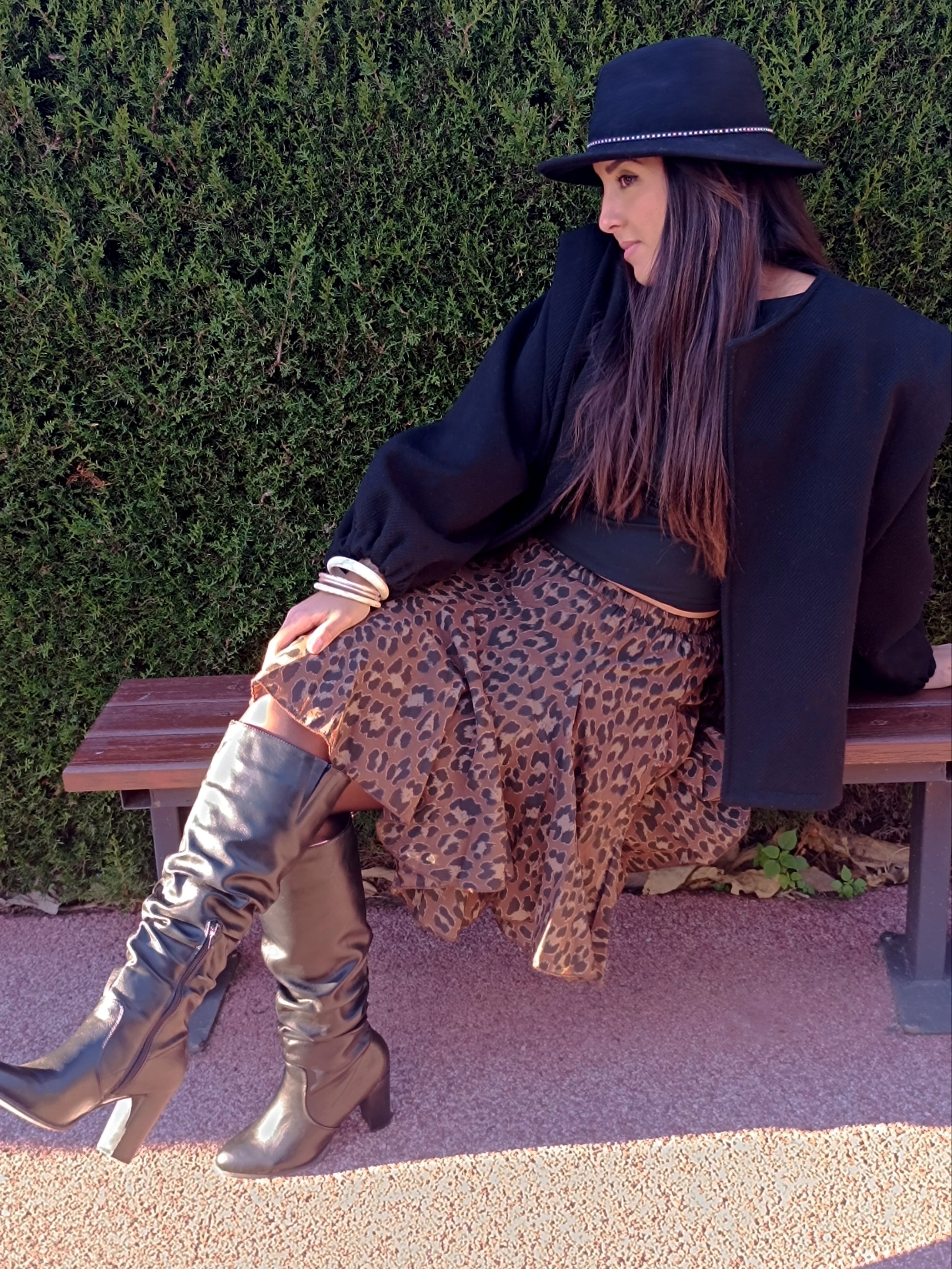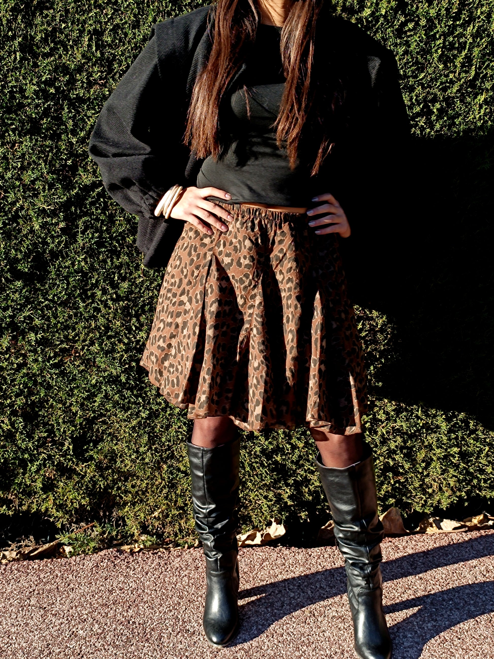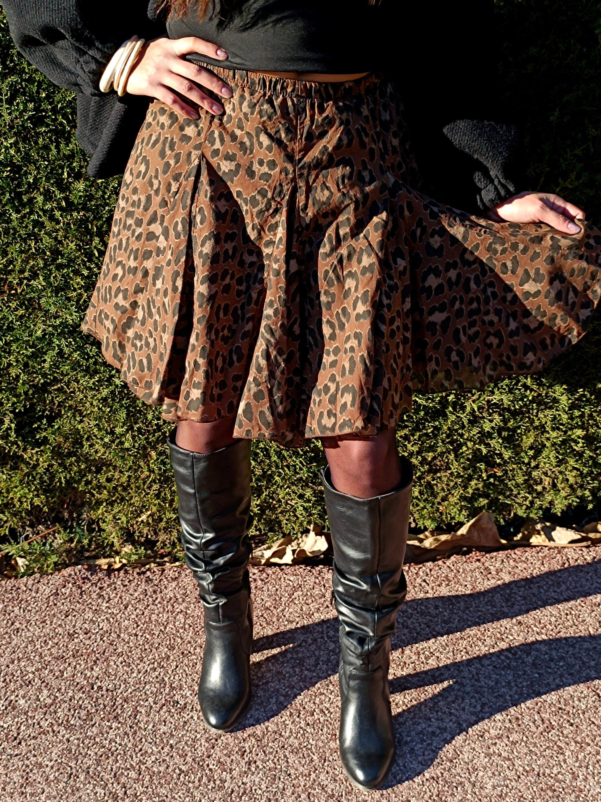 - Cette jupe léopard évasée à volants apporte une touche sauvage et féminine à votre tenue. Son imprimé tendance et sa coupe légère en font une pièce idéale pour créer des looks audacieux et stylés, tout en restant confortable. Facile à porter, elle s'adapte à toutes les saisons !