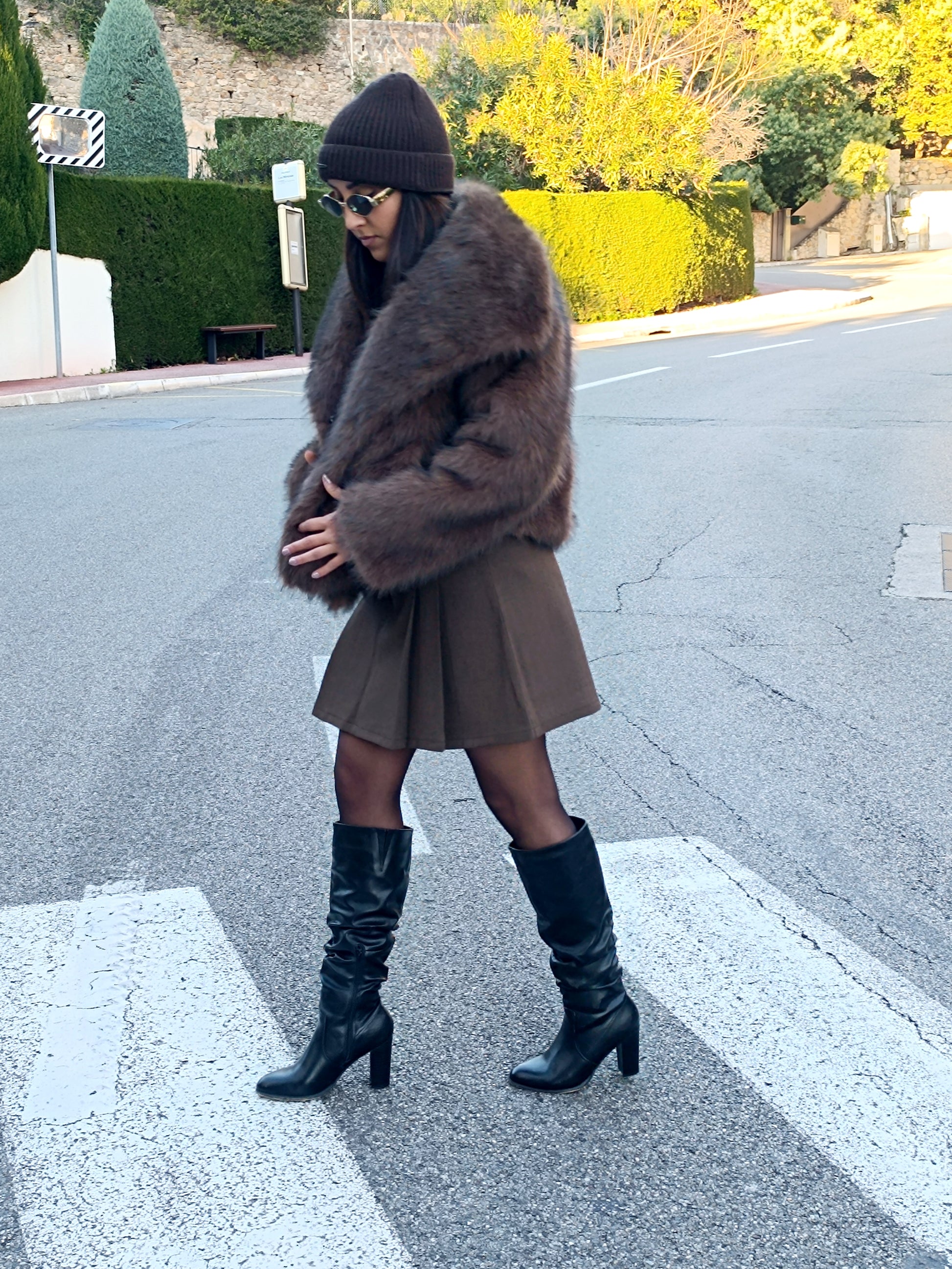 - Cette jupe marron avec doublure short est la pièce parfaite pour un look d'automne élégant et sophistiqué. Avec ses plis légèrement évasés, elle apporte une touche de féminité tout en restant chic et facile à porter au quotidien.