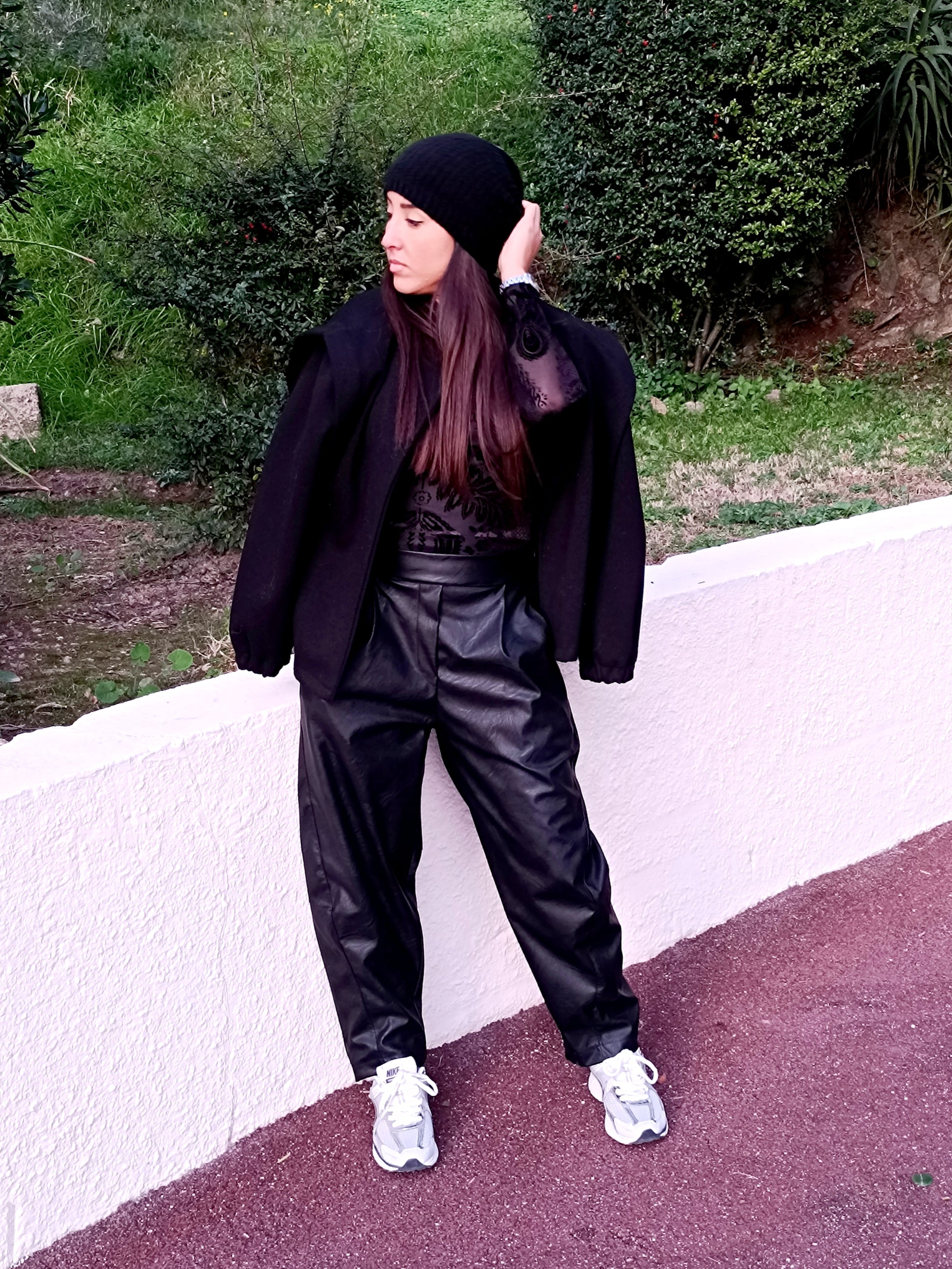 - Pantalon effet cuir noir avec poche latérale de chaque côté