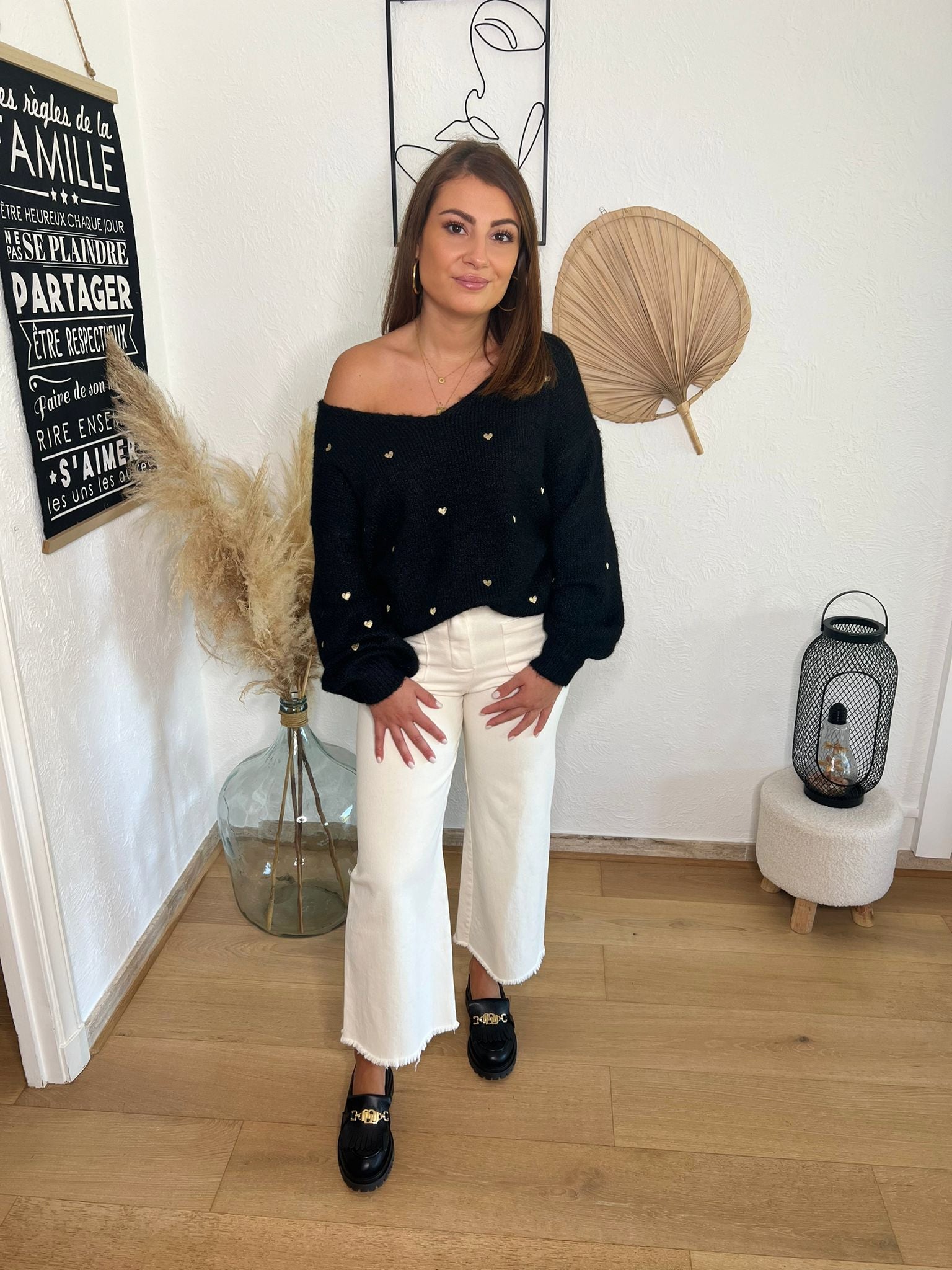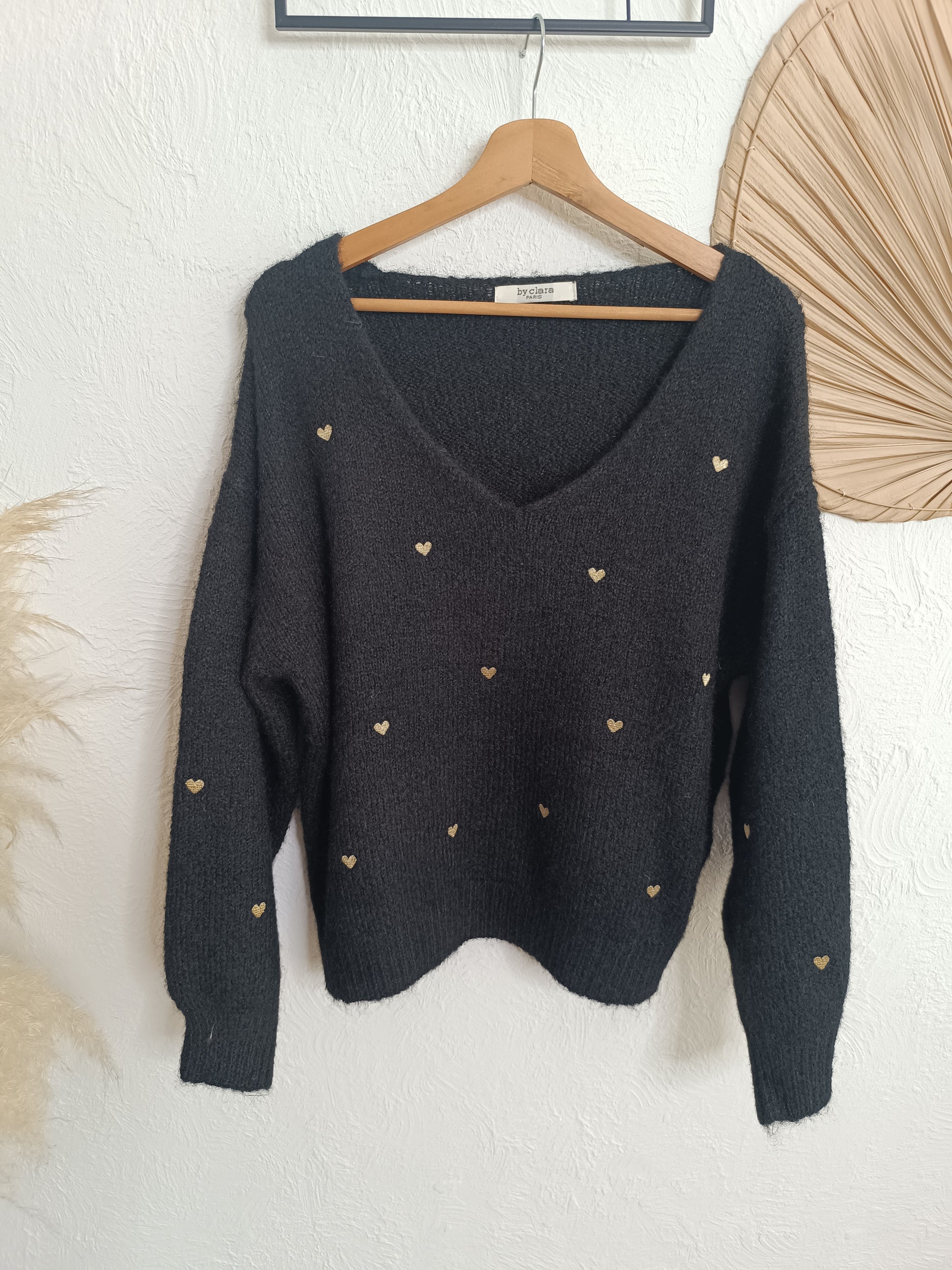- Pull noir avec motif "cœurs" doré 💛